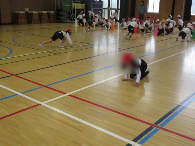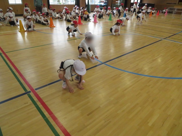 それぞれの思う動物の歩き方を表現して、お互いに歩き方を見合って、とても楽しそうに活動していました!