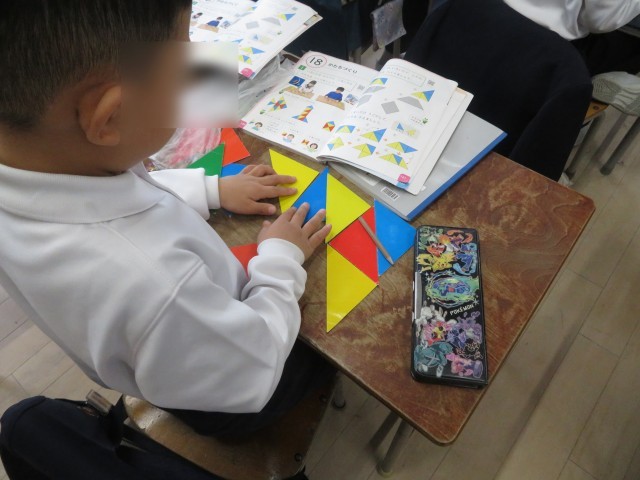 様々な形を作って「できた!」と嬉しそうに報告してくれる児童や、教え合いながら楽しむ児童の姿をたくさん見ることができました。