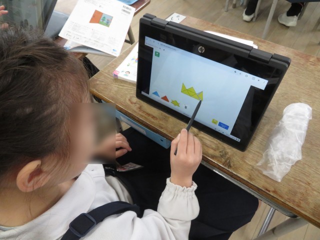 算数では、パソコンや色板を使って色々な形を作りました。
