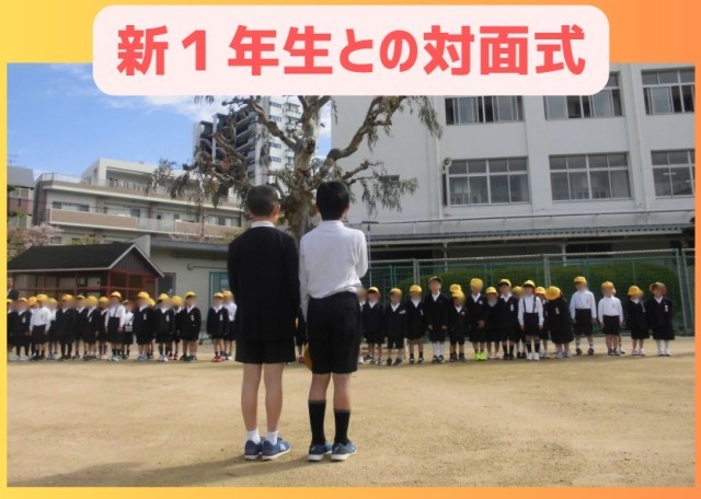 運動場では「新1年生との対面式」が行われ、少しドキドキしている1年生を、上級生がやさしく迎える姿が見られました。そして「よろしくお願いします」とお互いに元気よく挨拶することができました。
