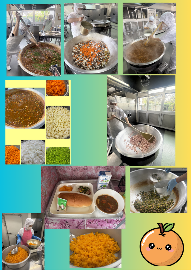 ビーフシチューは、ケチャップ、トマトピューレ、米粉のデミグラスソースを使用しています。上新粉でとろみをつけています。デミグラスソース(米粉)を使用することで、コクや旨みがあります。今日は、ラッキーにんじんが入っています。