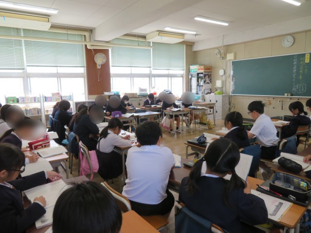 教室では落ち着いた雰囲気の中で、学習にも前向きに取り組む姿が見られます。各教科で内容が一段と深まり、子どもたちは自分の考えをもち、友達と伝え合いながら理解を深めようと意欲的に取り組んでいました。