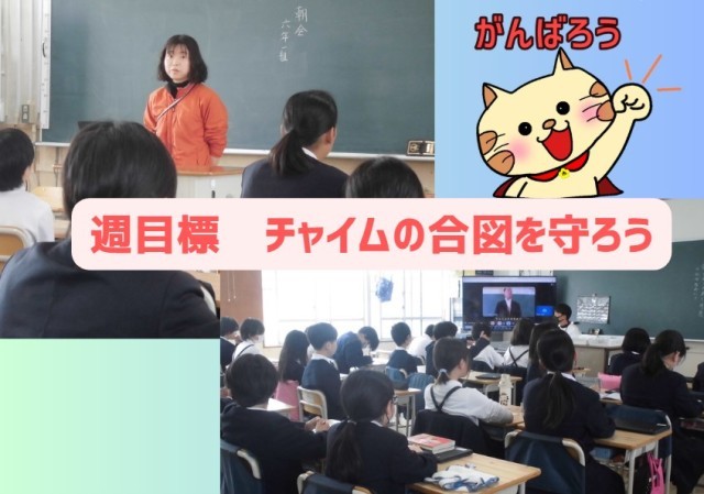 チャイムをきっかけに気持ちを切り替え、みんなで声をかけ合いながら、楽しく気持ちのよい学校生活をつくっていきましょう。