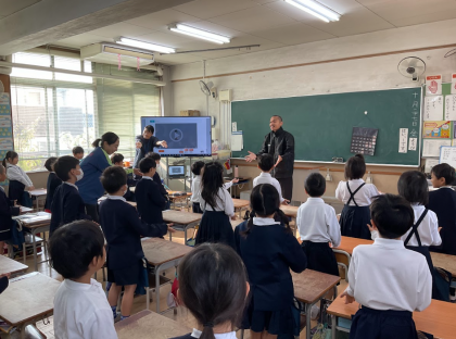 50周年記念式典の予行練習で、5年生の演舞や6年生の合奏、2学年での合唱を鑑賞し...