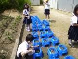 1年生が種まきをして、毎日、水やりをがんばっていた「あさがお」ですが、順調に双葉...