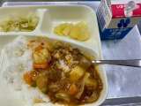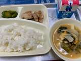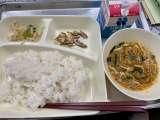 ハヤシライスですが、給食室で小麦粉とバターでルーから全て手作りです!しっかりと...