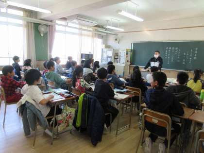 背筋を伸ばして担任の先生のお話をしっかり聞く姿が見られました。