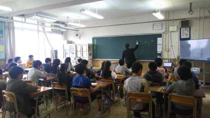 6年生は漢字について学習しました。 1画の漢字から考えて発表していました。