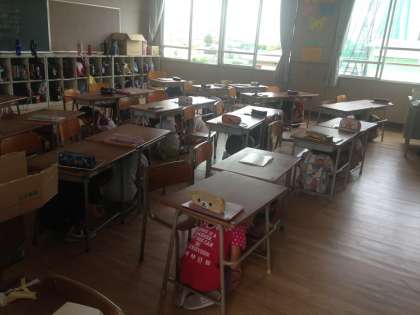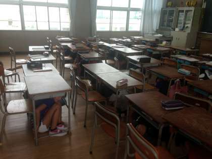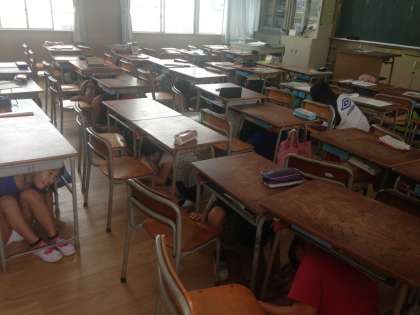 今日、午前11時過ぎより南海トラフ巨大地震を想定した「大阪880万人訓練」が大阪府内全域で行われ、東井高野小学校も参加しました。授業中であり放送がかかると、子どもたちみんな素早く机の下に入りました。緊張感をもって、みんな真剣に取り組みました。