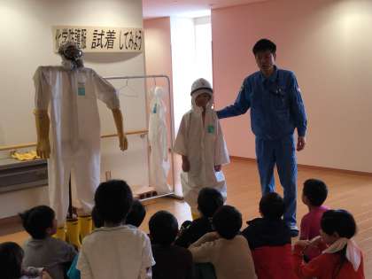 また、化学防護服を着たり、クイズに答えたり、楽しく学習することができました。