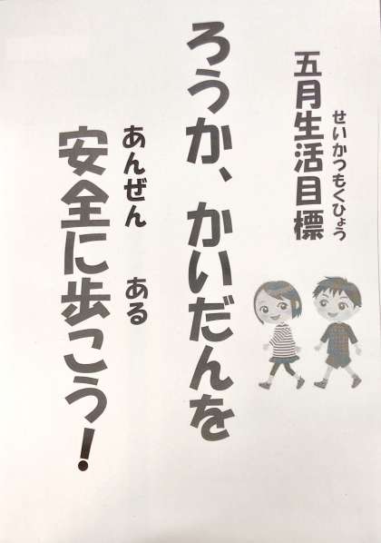 5月の生活目標は、「ろうか、かいだんを安全に歩こう!」です。