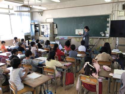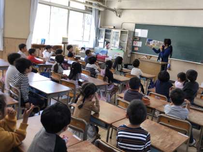 今日はボランティアの方々に朝の読み聞かせに来ていただきました。