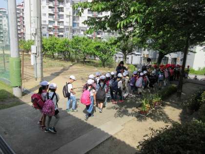 今日はさわやかな快晴。2年生は、春の遠足で天王寺動物園へ行きます。 子どもたちは、遠足が楽しみで、ワクワクしているのが感じられました。 元気に「行ってきます。」