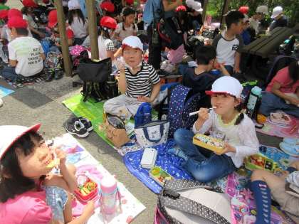 お弁当タイムになり、子どもたちは、おいしそうなお弁当を広げて、嬉しそうにもぐもぐ食べていました。