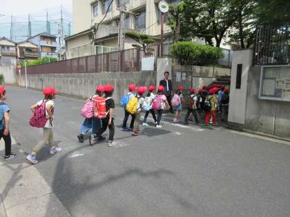 動物園を出て、学校へ戻ってきました。気温もぐんぐん上がり、暑い中、電車に乗り、しっかり歩きました。家へ帰って、今日見た動物のお話をしてくださいね。おいしいお弁当ありがとうございました。