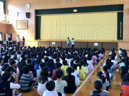 児童朝会では代表児童から作文の発表がありました。