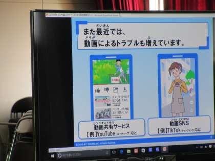 SNSやLINEを使った時に注意しなければならないことや、インターネットで情報が流れて危険なことなど、映像も見ながら学ぶことができました。