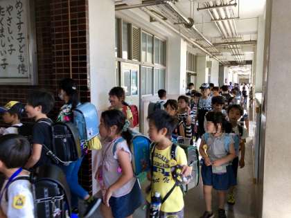 高学年がリーダーになって、しっかり並んで集団下校することができました。