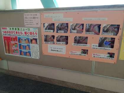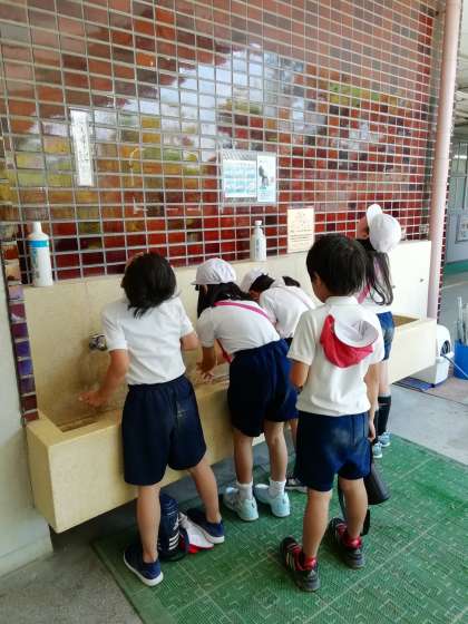 東井高野小学校では、手を正しく洗うための「手を洗いましょ〜う!」