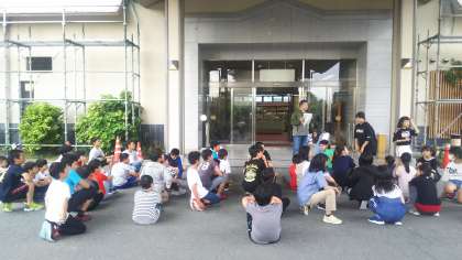 5月29日(水) 宿舎に着いてすぐに避難訓練を行いました。 この後は入浴、食事です。
