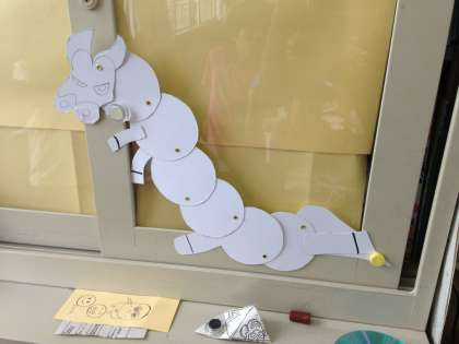 5時間目の授業の様子です。4年1組は、「くねくねりゅう」という作品を本当にとても上手に作っていました。