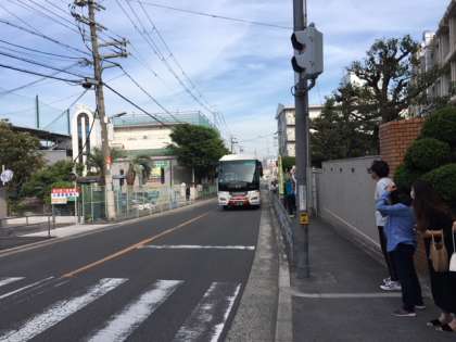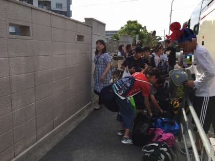 4時35分 バスが学校に到着しました。保護者の方もお迎えに来てくださっています。