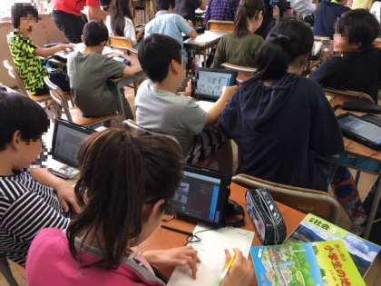 5年2組では、5時限目教室でタブレットを使って、社会の授業がありました。