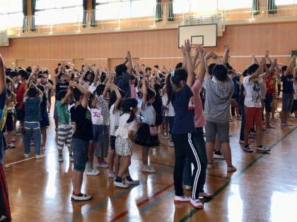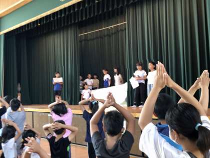 全校で「〇〇をしているのはどっちだゲーム」をしました。