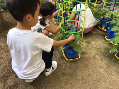 つるが上にのびていくのが楽しみですね。