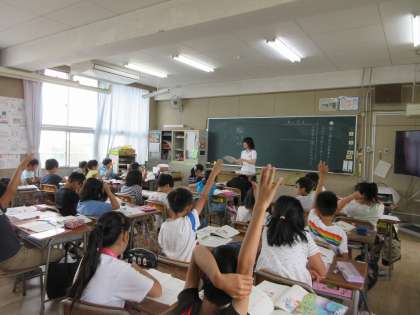 4年2組は、みんなで声を合わせて、教科書の音読している様子が見られました。