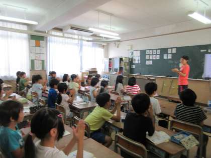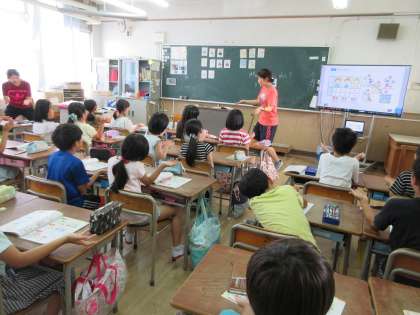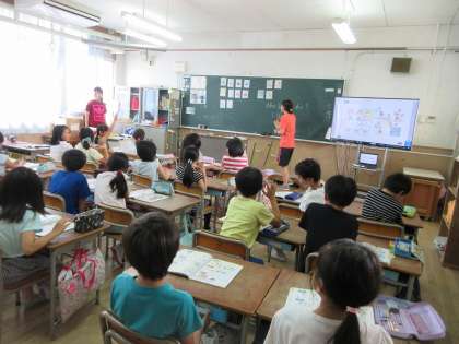 3年1組の5時間目は、外国語活動の授業で、原田先生が楽しく授業をすすめました。