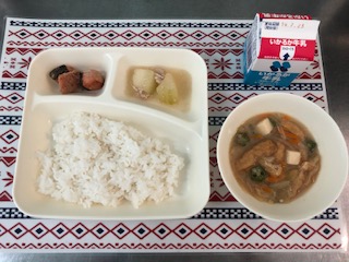 17日の給食は、さけのつけ焼き・みそ汁・とうがんの煮もの・ごはん・牛乳です。