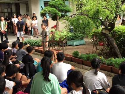 出発式では、校長先生のお話を聞き、林間学習がんばろうという気持ちが高まっています。