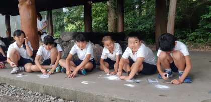 お腹いっぱいにカレーを食べた後は勾玉作りです。