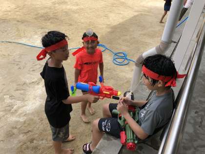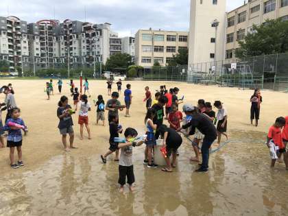 夏休み校庭開放〜水鉄砲で遊ぼう!〜2 公開日 2019/08/06 更新日 2019/08/06 できごと 8月6日(火) 後半は頭に的をつけて狙います。 みんなで仲良く楽しい思い出をつくることができました。 いいね(0)
