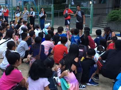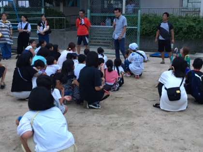 地域子ども会主催の夕涼み会が行われました。開会の挨拶の後、説明を聞いて、校舎ではきもだめしが行われました。また、運動場では、かき氷を食べました。