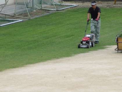 曇り空が続きますが、雨の降らない時間に、管理作業員さんがしてくださっています。
