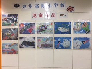 昨日より地下鉄井高野駅に児童の絵を11枚展示していただいています。