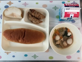 10日の給食は、あげぎょうざ・中華煮・なし(豊水)・おさつパン・牛乳です。