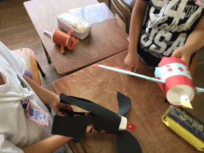 2年2組は、昨日の続きで、ストローを使ったおもちゃが完成です!!