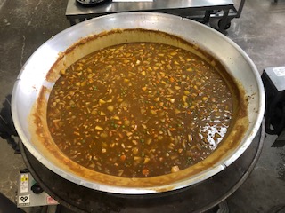 チキンカレーライス【米粉】は、鶏肉やにんじん、じゃがいも、たまねぎ、グリンピースが入ったボリューム満点なカレーライスで、小麦アレルギーの児童でも食べることが出来る米粉のカレールウを使っていました。