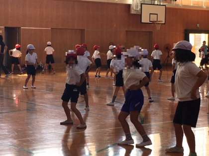 2年生は、2時限目講堂で運動会の練習です。