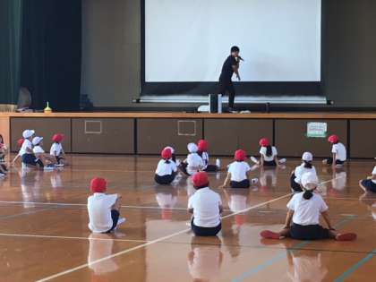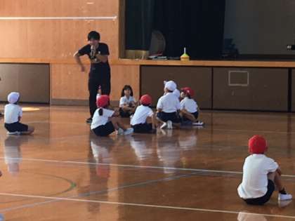 グループごとに、円になって演技しています。音楽に合わせて、動きも上手になってきました。子どもたちが、歌うところも元気いっぱいです。!!