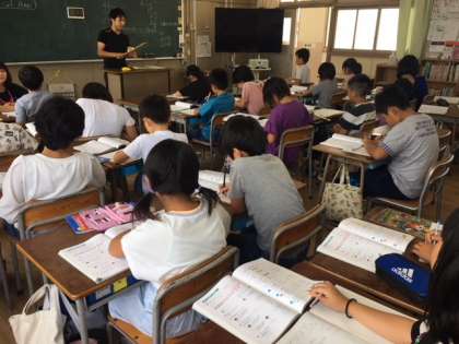 4年生は、3つのクラスに分かれて、算数の授業です。