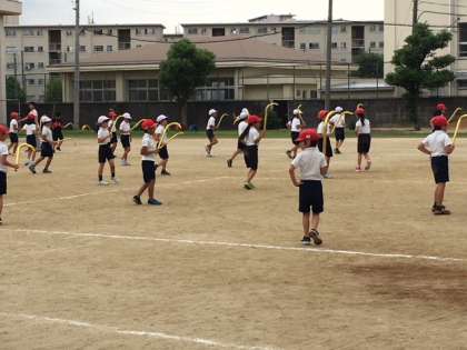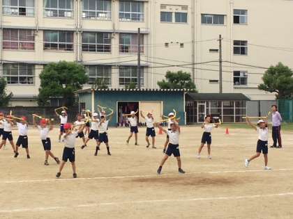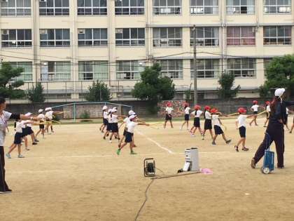 3年生は、6時限目が体育の授業で、運動会の演技の練習です。