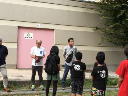 会館前での出発式では、東井高野連合町会長や校長先生、東淀川警察署からご挨拶とお話がありました。