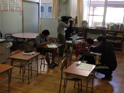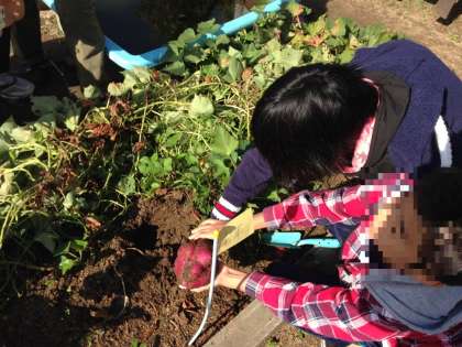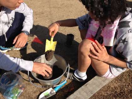 今日は、なかよし学級でも2年生と同様に芋ほりを行いました。教室で授業をしたあと、畑でさつまいも掘りとペットボトルにほうれん草を植えました。