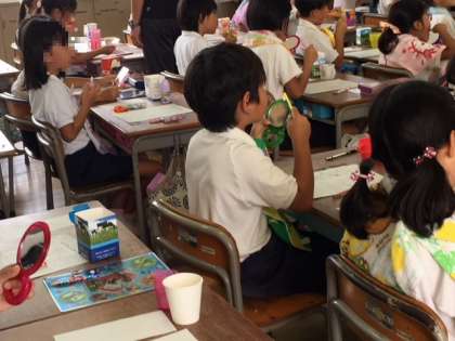 2年1組 歯磨き指導 公開日 2019/10/02 更新日 2019/10/02 2年生 10月2日(水) 歯科学校医の多田先生や歯科衛生士の方が来られ、2年1組は2時限目に、「歯みがき指導」の授業を受けました。 子どもたちは、話を聞いた後、鏡を使って、自分の歯を見たりしています。 いいね(0)