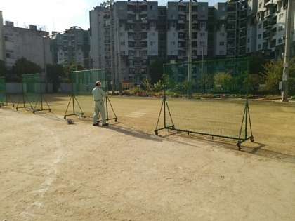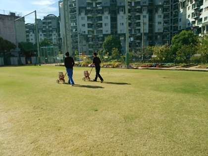 種をまいた後は、防球ネットなどで立ち入り禁止の状態にして、約1か月間の養生期間に入ります。