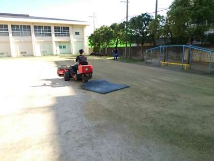 10月16日、午後1時40分、運動場では、冬芝の種まきが行われました。
